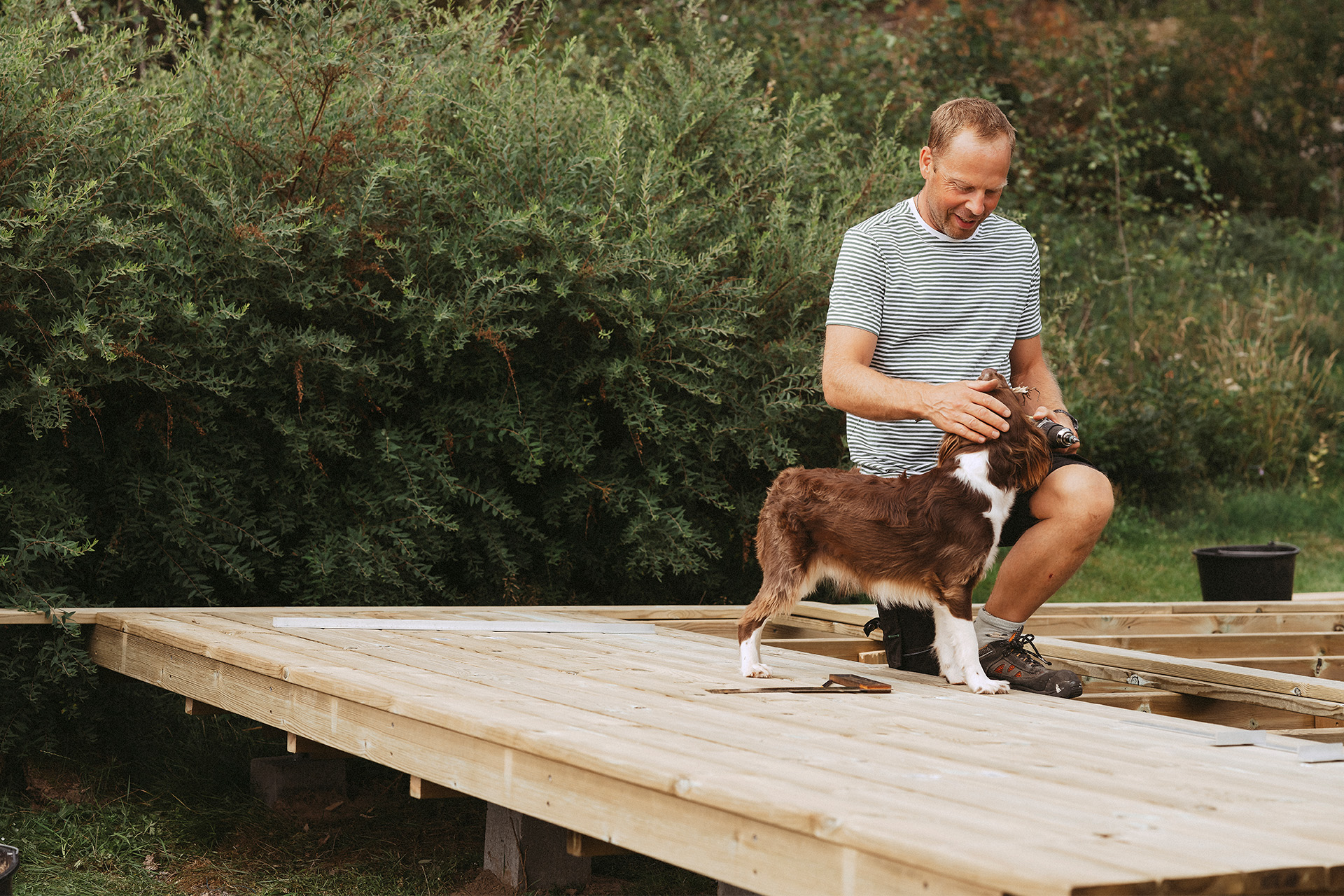 Auf Holzterrassendielen stehen